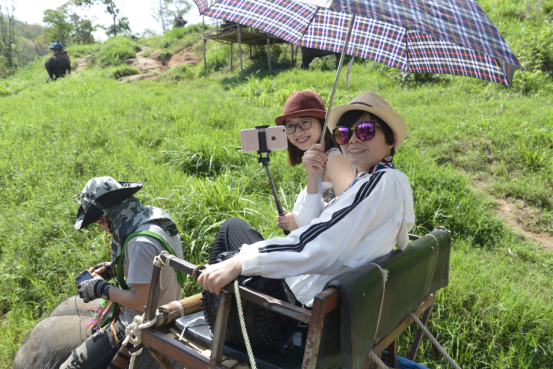 來到清邁,騎大象來趟叢林探險是絕對不能缺少的重頭戲,一般兩人共乘一只大象,并有專業(yè)象師隨行。大象上坡和下坡的時候,走的都是淤泥路,所以大家緊緊地抓住扶手,時時擔(dān)心自己會掉下來。象隊中,有只叫王寶強的大象很狡猾,有只叫Lady Gaga的大象走得慢悠悠地,還有只大象不愛跟隊伍走,專愛挑別人不走的有難度的路,讓坐在上面的人備感驚險刺激。 在大象訓(xùn)練營,大家觀看大象表演。在訓(xùn)象師的指揮下,大象除了會跳舞、踢足球、騎車、站立、鞠躬、戴摘帽子,還會自由隨性揮表演獨特的繪畫天份,精彩的表演讓在場的觀眾掌聲不斷、笑聲不斷。而后大家前往乘坐竹筏,一路上觀賞寧靜的山谷河川及周圍森林美景,河水不深,時而濺起水花,撐來漂去,好不悠閑。